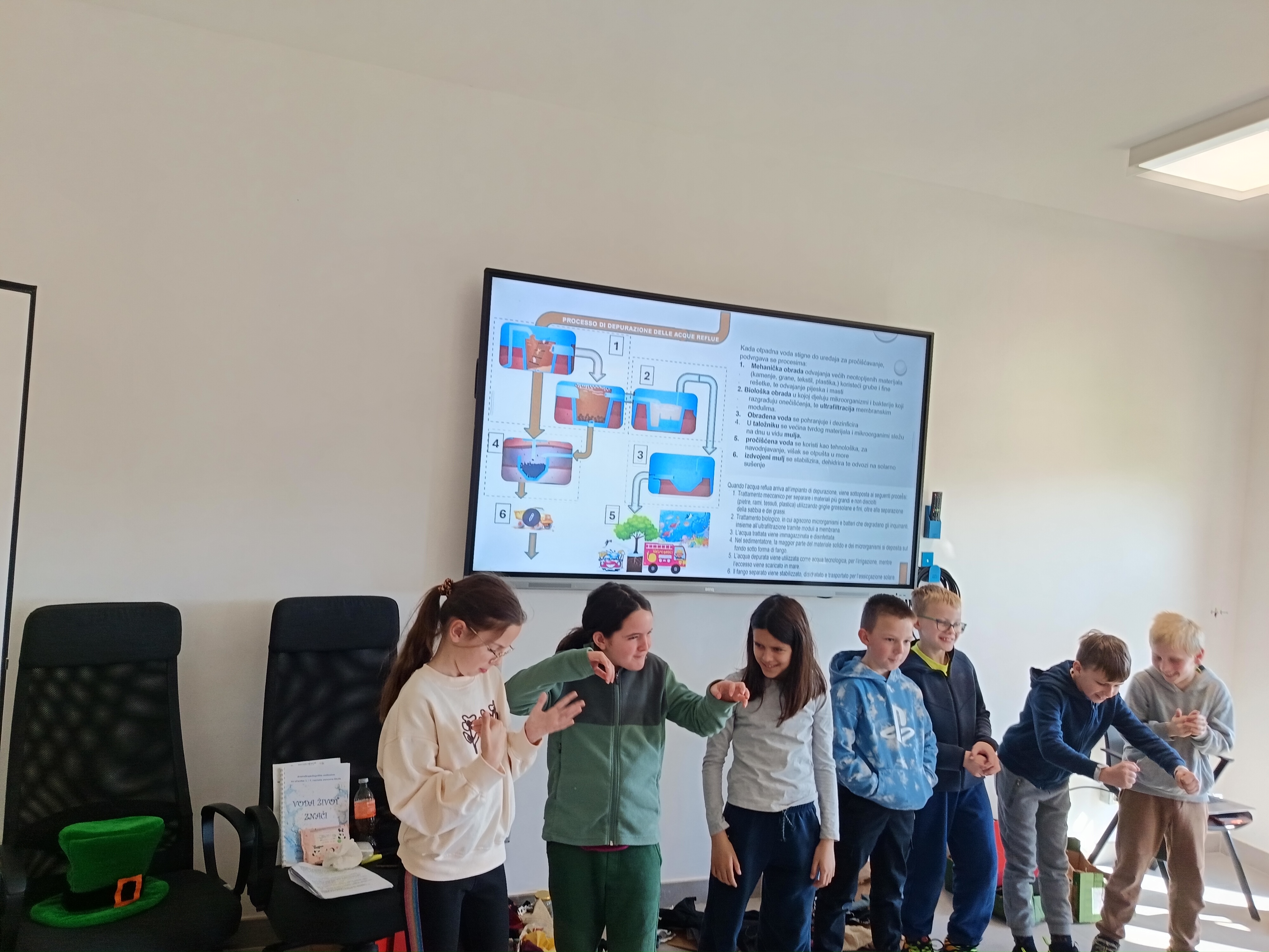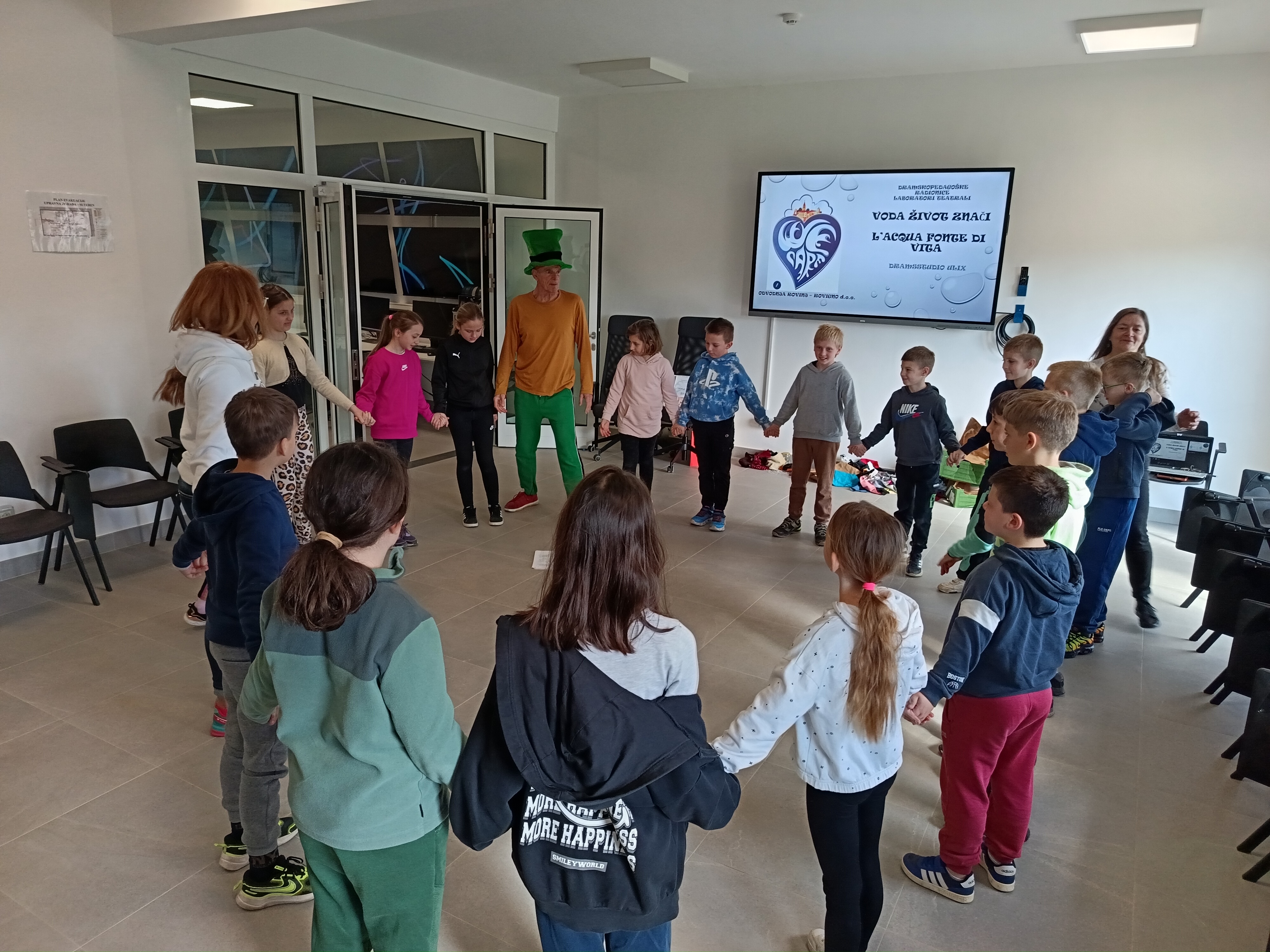 Održana je dramskopedagoška radionica koje su osmislili i vodili dva profesora iz DramsStudija ULIX, Milan Medak sveučilišni dramski pedagog i Sanja Lađarević, d.i.a., dramska pedagoginja. Jedan od ciljeva radionice „Pročišćavanje otpadnih voda – Put kapljice vode“ je poticanje razvoja: ekološke svijesti, razumijevanja važnosti očuvanja vode, suradnje i timskog rada te kreativnog izražavanja. Uz dramski rad, radionica je uključivala likovno, glazbeno i jezično izražavanje. Učenici su pjevali, stvarali zvukove vode i rada postrojenja, likovno interpretirali novostečene spoznaje. Na veoma zabavan, motivirajući i drugačiji način učenici su upoznati sa radom uređaja za pročišćavanje otpadnih voda UPOV Cuvi.