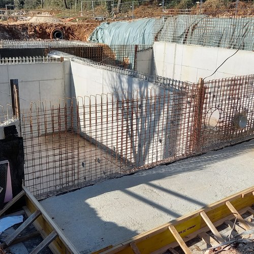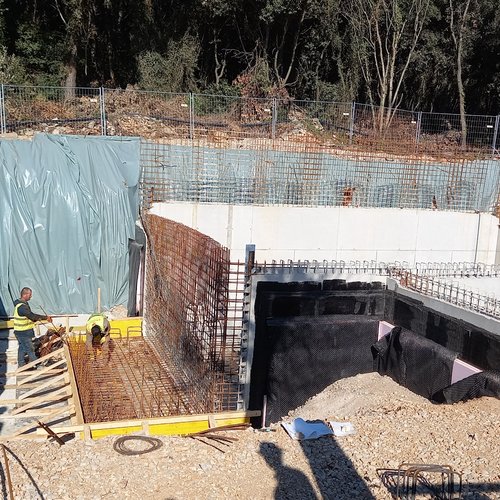 All’IDAR Cuvi erano in corso i lavori di posa in opera del cemento armato e il montaggio della carpenteria edile all’impianto del pretrattamento meccanico, ai bacini di fitodepurazione e al futuro edificio amministrativo, dov’è stato effettuato il montaggio delle pareti del pianoterra in cemento armato, precisamente al punto dove verrà situato il futuro laboratorio. All’impianto del pretrattamento meccanico è stata posata l’impermeabilizzazione e la protezione dell’impermeabilizzazione, mentre al garage per i veicoli pesanti si è continuato con le opere edili ed è stata posata l’impermeabilizzazione dalla parte esterna.