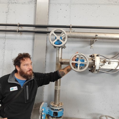 Alla parte teorica è seguita la parte pratica, che ha chiarito il funzionamento degli ispessitori dinamici e le opzioni di trasferimento dei fanghi nell’unità di trattamento stessa. Il rappresentante dell’Appaltatore della ditta CID s.r.l., Federico Battain, si è reso disponibile per le ulteriori domande e ha spiegato e dimostrato sul posto la gestione dei macchinari del comparto trattamento fanghi.