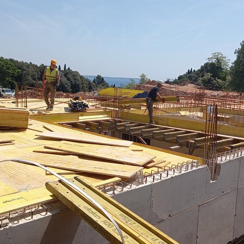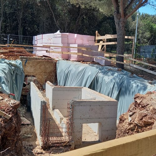 All’IDAR Cuvi nel periodo dal 09/05 al 13/05 sono stati effettuati i lavori di impermeabilizzazione delle pareti dei bacini di fitodepurazione, nonché i lavori di riempimento attorno le pareti e la preparazione delle fondamenta per la posa del cemento armato sul fondo dei bacini. Al futuro edificio amministrativo è in corso l'installazione delle lastre e dell’armatura statica per il fondo del pavimento del seminterrato – pianterreno, mentre al punto del pretrattamento meccanico sono in corso i lavori di scavo, ed è in piano la preparazione della platea e l’installazione del tampone per le tubazioni delle acque reflue. Sono inoltre in corso i lavori di scavo della 1a fase del 1 bypass permettendo così il libero funzionamento dell'IDAR durante i lavori edilizi.