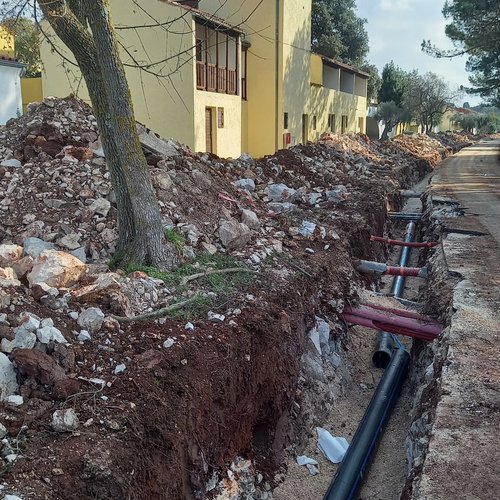 Nella via Prima brigata istriana sono stati portati a termine i lavori di scavo, sono state installate le tubature e ricoperto il fossato, e presto si inizierà con i lavori preliminari per l’asfalto e l’asfaltatura della strada. I lavori alla parte residua della ramificazione che porta verso ai campi di calcio verranno avviati dopo il 14/04/2022.