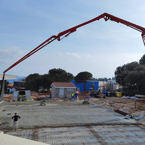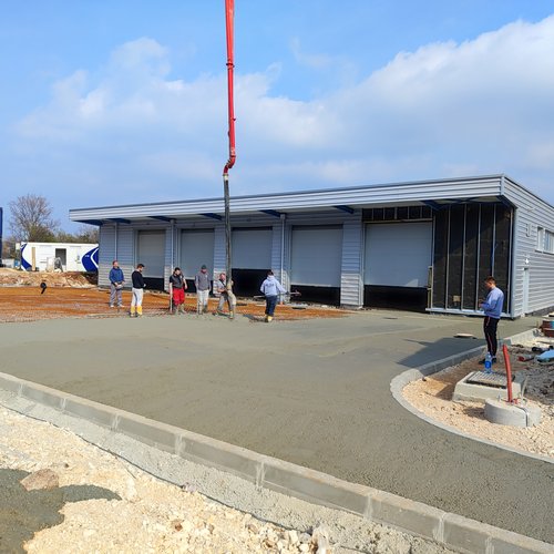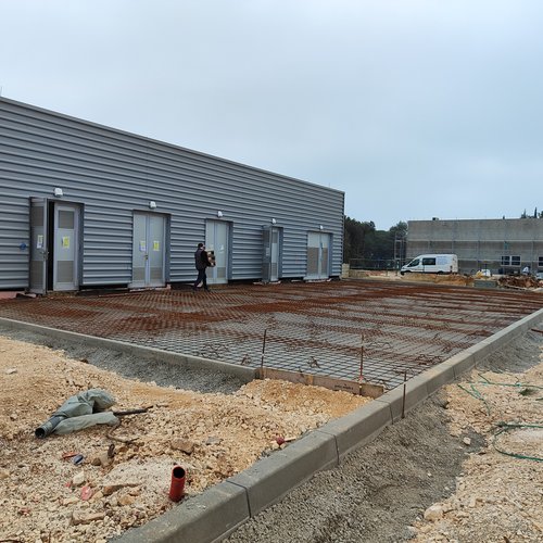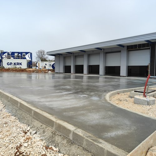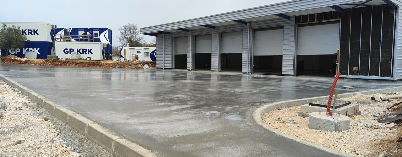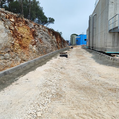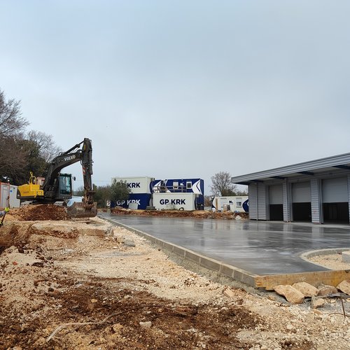 Al garage per i veicoli pesanti era in corso la preparazione del sottofondo e la posa della pavimentazione in resina epossidica all’interno della struttura, mentre davanti al garage è stata montata l’armatura ed effettuata l’acquisizione, la posa in opera e la maturazione protetta del calcestruzzo – pavimento industriale al quarzo. Alle strutture dei bacini di fitodepurazione e dell’equalizzazione sono in corso i lavori alla facciata – sistema di isolamento termico a capotto ETICS e la preparazione del sottofondo per la posa della pavimentazione in resina epossidica. Davanti alla sala di controllo è stata montata l’armatura per la lastra in cemento armato - posa del pavimento industriale al quarzo. Nell’ambiente circostante è in corso la posa degli accessori di complemento – cordoli e la preparazione del sottofondo per l’asfalto.
