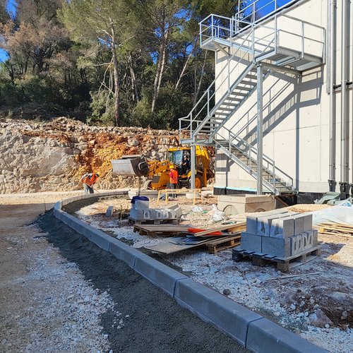 Nel periodo dal 13/02 al 17/02/2023 all’IDAR Cuvi si stavano terminando i lavori alla facciata - sistema di isolamento termico a capotto ETICS ed i lavori di carpenteria metallica alla struttura del pretrattamento meccanico.