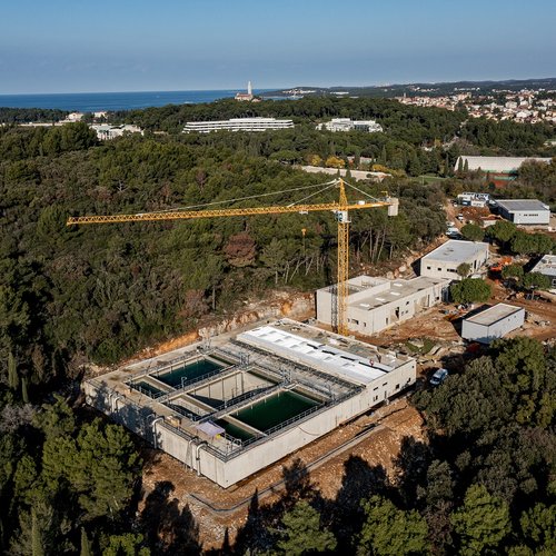 Tra il pretrattamento meccanico e l’impianto di equalizzazione è in corso la preparazione per le fondamenta e il montaggio degli impianti, mentre all’edificio dell’impianto di equalizzazione si sta applicando il primer e si stanno verniciando le pareti.