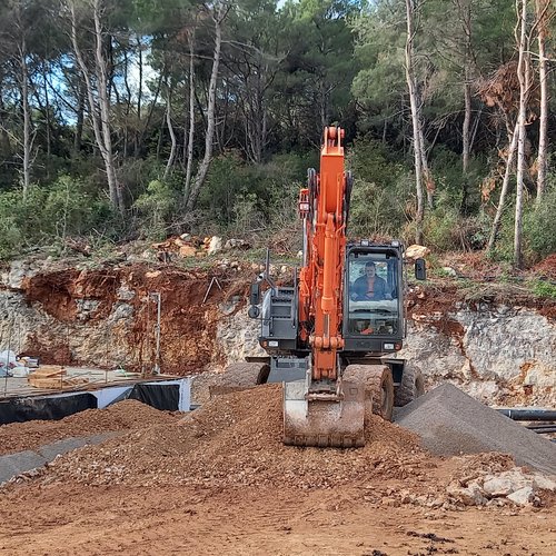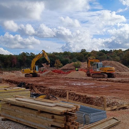 Al garage per i veicoli pesanti al momento è in corso la posa in opera delle piastrelle in ceramica e dell'impermeabilizzante interno, mentre davanti al fabbricato sono in corso il lavori di scavo e la preparazione delle fondamenta per gli impianti.