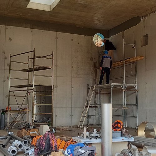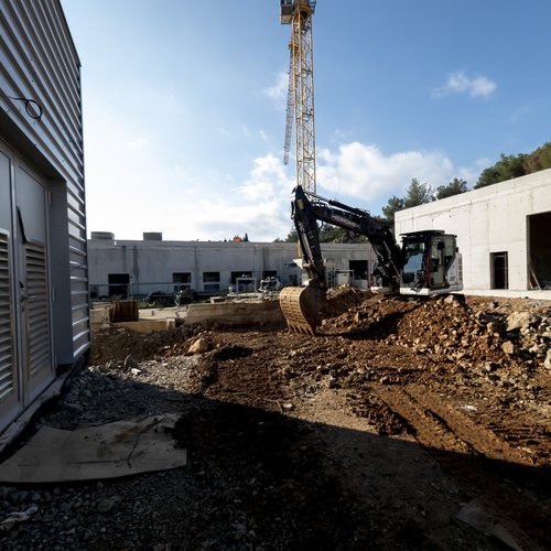 Al futuro edificio amministrativo è in corso la posa in opera delle piastrelle, la verniciatura delle pareti e l’installazione degli impianti elettrici, idrici e comunali.