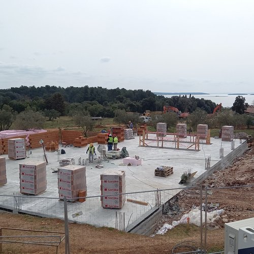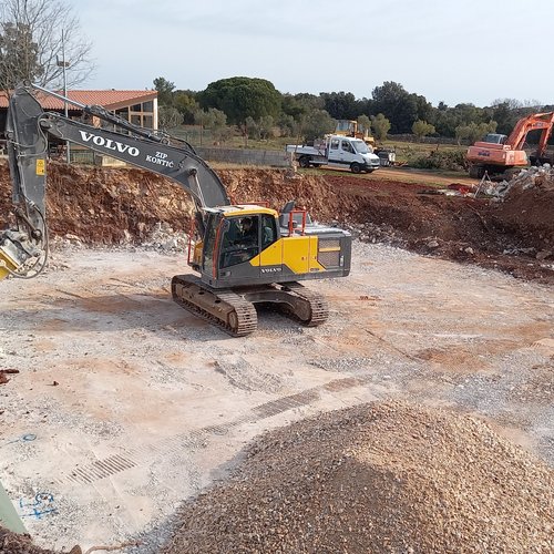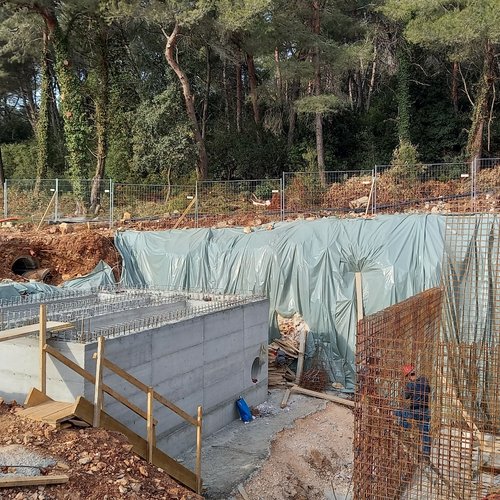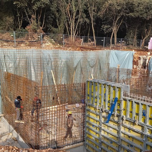 È in corso la costruzione del garage per i veicoli pesanti, i lavori di scavo e i lavori preliminari alla struttura interrata dell’edificio amministrativo con laboratorio, nonché i lavori alle strutture in cemento armato dei bacini di fitodepurazione.