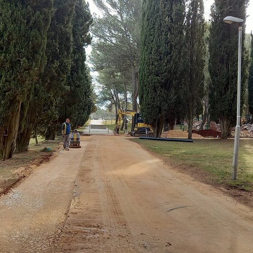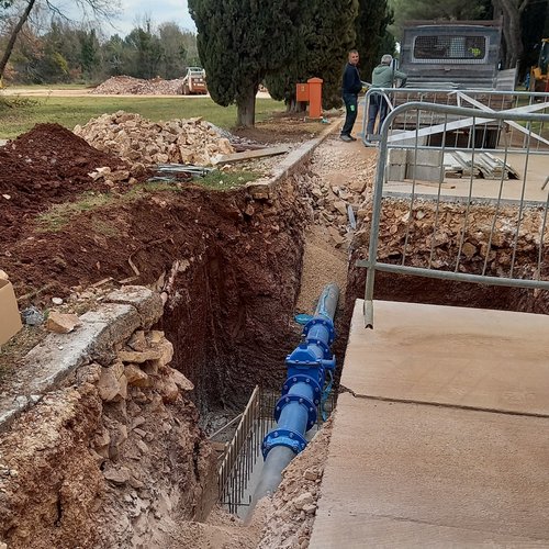 Si sta continuando con i lavori di scavo, con la posa della condotta in pressione per l’irrigazione con le acque reflue depurate e il riempimento degli scavi al camping Polari, e finora è stato posato circa il 68% della complessiva condotta in pressione.