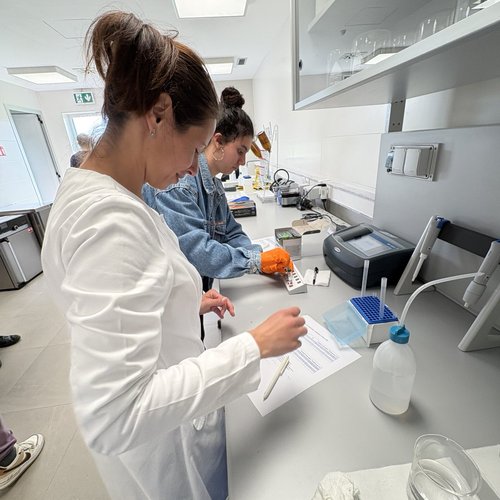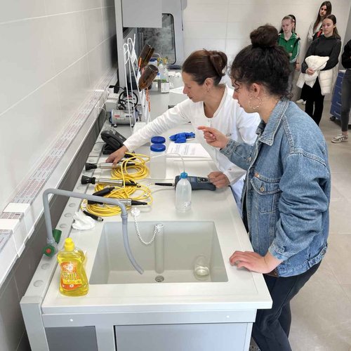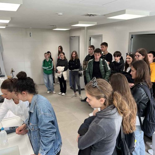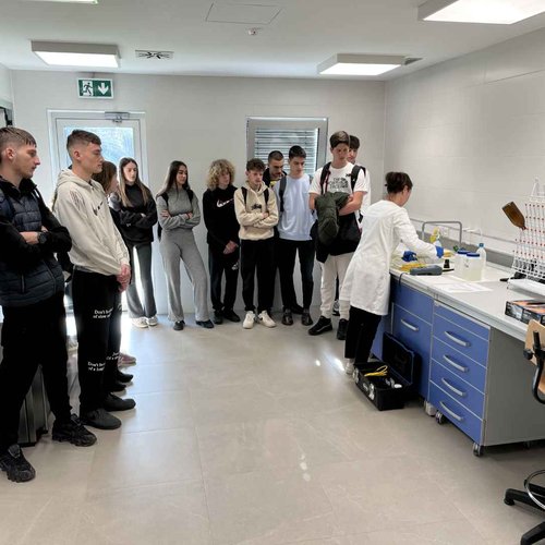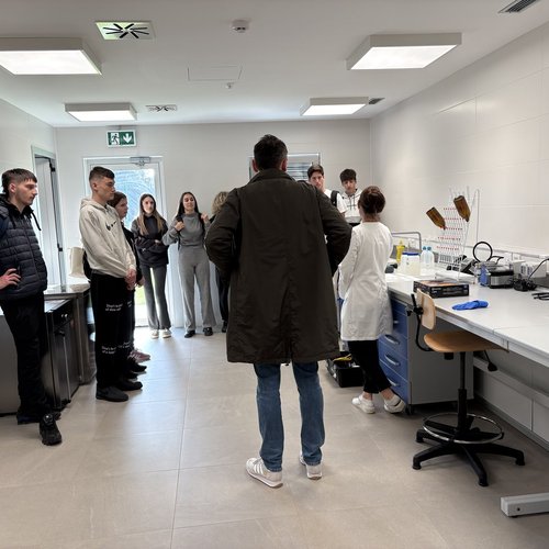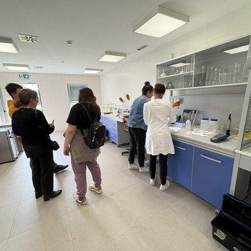 Durante la visita guidata, gli alunni hanno avuto l’opportunità di osservare l’acqua reflua in entrata e in uscita, la sabbia separata e il fango disidratato (con il 20% di sostanza secca). Presso l’edificio di biologia e ultrafiltrazione, hanno appreso il processo di depurazione delle acque reflue e hanno visto un esempio di membrana e il processo di sedimentazione dei fanghi provenienti dal bioreattore. Nell’edificio dell’amministrazione è stato proiettato un documentario di dieci minuti sulla costruzione dell’IDAR Cuvi e dell’Impianto per l’essicamento solare dei fanghi. Gli alunni hanno seguito con grande interesse le spiegazioni fornite dal personale nella sala di gestione e controllo dell’IDAR Cuvi, sulla rete fognaria e l’IDAR di Valle, nonché nella sala con le stampanti 3D. Particolare entusiasmo è stato mostrato durante i laboratori, dove, guidati dalla tecnica di laboratorio Mirjam Dobreva, gli alunni hanno partecipato attivamente agli esperimenti sulle analisi delle acque reflue. Nei laboratori sono stati analizzati i seguenti parametri dell’acqua reflua depurata e dell’acqua di mare: pH, conducibilità, ossigeno disciolto e nitrati (solo nell’acqua reflua depurata). Grazie ai risultati della conducibilità, gli studenti hanno potuto notare la differenza tra l’acqua reflua depurata e quella di mare.