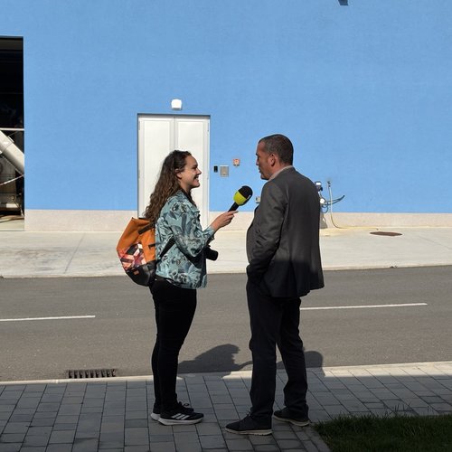 Durante la visita è stato registrato un servizio radiofonico con la partecipazione del Direttore della ditta Depurazione acque di Rovinj-Rovigno s.r.l., Ognjen Pulić mag. ing. aedif., dell’insegnante Antonella Sošić e delle alunne del primo e secondo anno del liceo generale e linguistico, Flora Marić e Daria Bottai.