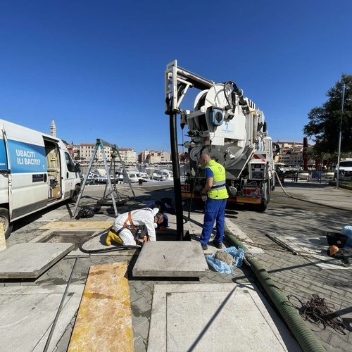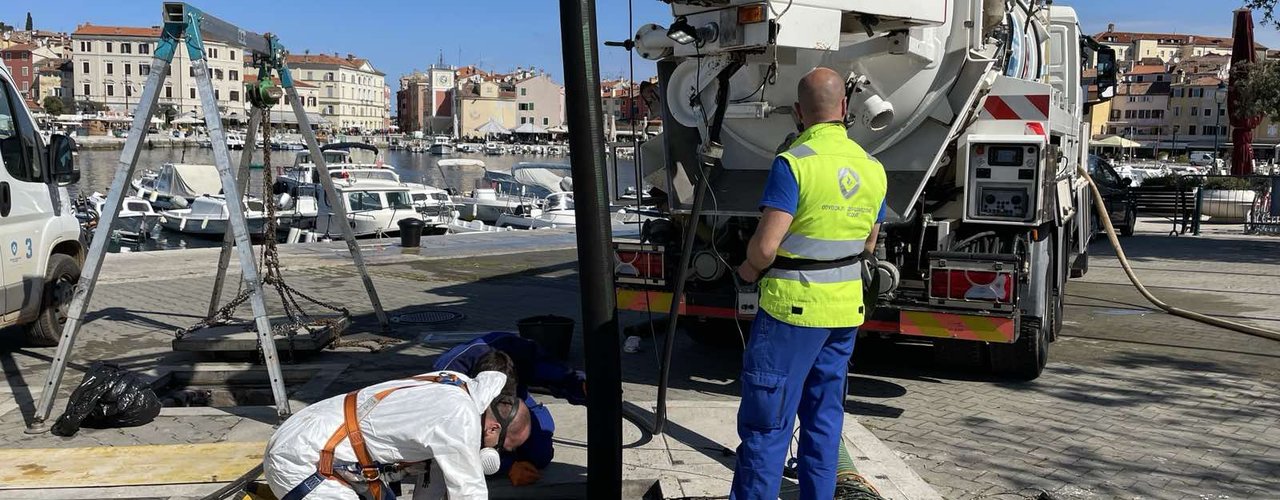 Gli addetti della Depurazione acque Rovinj-Rovigno s.r.l. il giorno 27 aprile hanno pulito la stazione di pompaggio “Cinema” con macchine per la pulizia, secondo il paino di manutenzione regolare degli impianti della depurazione delle acque reflue urbane della città di Rovinj - Rovigno. La stazione di pompaggio “Cinema” è stata ricostruita nell’ambito del Progetto di raccolta, smaltimento e depurazione delle acque reflue dell’agglomerazione di Rovigno con il cofinanziamento dei fondi dell’Unione europea. La pulizia della stazione è stata effettuata con altrezzature e veicoli specializzati anch'essi acquisiti nell'ambito del progetto EU.
