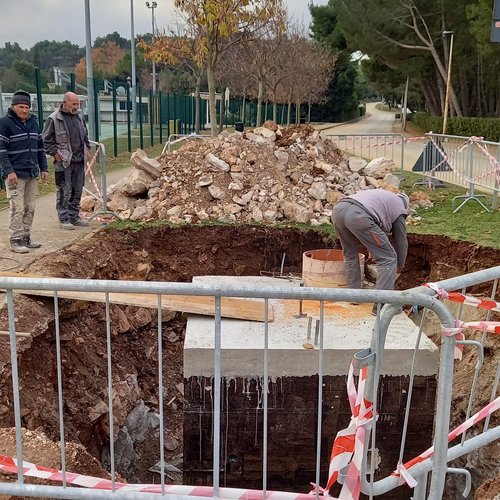 Sono in corso ancora oggi, 23/11/2021, i lavori all’impianto di depurazione delle acque reflue Cuvi e alla condotta in pressione per l’irrigazione con le acque reflue depurate, dopodiché segue la pausa natalizia fino al 10/01/2022. In totale sono stati installati 2.200 m di condotta in pressione. Le immagini mostrano i lavori preliminari alla futura sala di comando dell’Impianto di depurazione delle acque reflue, la parte asfaltata della via Vittime di Cresini e i lavori al pozzetto d’ispezione per il futuro allaccio dell’hotel Eden della condotta in pressione per l'irrigazione delle aree verdi circostanti all’albergo con le acque reflue depurate.