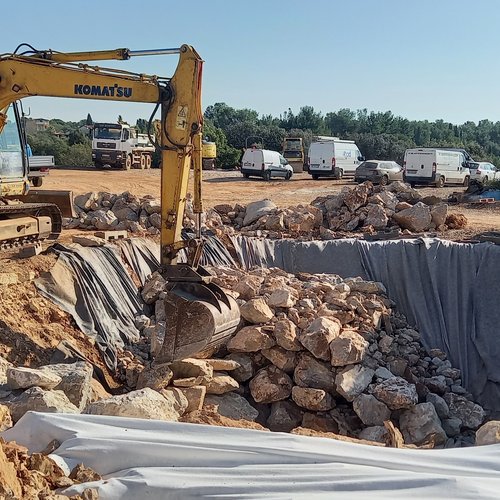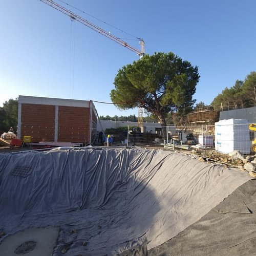 Bacino di fitodepurazione: montaggio delle tubature e degli impianti nella sala tecnica, nonché la posa in opera degli impianti elettrici. Riempimento della 3a linea del bacino di fitodepurazione per la verifica dell’impermeabilizzante.