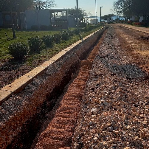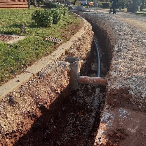 Al campeggio Polari si stanno ultimando i lavori di posa delle tubature e il riempimento degli scavi alla condotta in pressione della acque reflue depurate. In totale finora è stato installato l'80 % della condotta in pressione.
