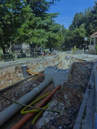 Nel mese di maggio 2025, i lavori per la costruzione del collettore fognario in via Carducci sono in fase di completamento, con il 95% delle attività pianificate già completate.