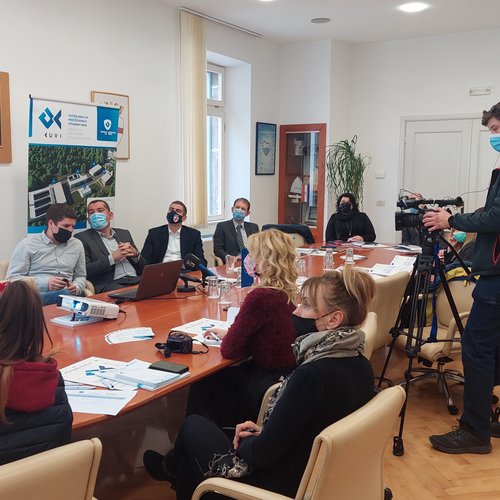 Dopo la presentazione, i rappresentanti dei media hanno posto delle domande a tutti i portavoce e domande aggiuntive al responsabile del progetto Ivan Barbić e alla rappresentante degli ingeneri di supervisione Andrea Užila Legović. Le domande erano legate all’impatto ambientale del Progetto, al bisogno di ulteriori finanziamenti del Progetto, alla costruzione della condotta in pressione e al riutilizzo delle acque reflue depurate. Nelle risposte è stato confermato che il Progetto avrà un impatto ambientale notevolmente positivo, soprattutto sull'ambiente marino, e direttamente anche sui cittadini della città di Rovinj-Rovigno. I portavoce presenti hanno ancora una volta spiegato perché c’è stato il bisogno di ulteriori finanziamenti del Progetto. In effetti, il bisogno di fondi ulteriori era comparso per via del processo complicato dell’appalto pubblico per la costruzione dell’impianto di depurazione delle acque reflue e dell’impianto di essicazione solare dei fanghi, delle differenze dei prezzi nell’edilizia comparando la situazione attuale e il periodo quando sono stati valutati i lavori, causando la proroga del termine di chiusura del progetto. I media hanno dimostrato interesse per il riutilizzo di parte delle acque depurate. Le acque reflue depurate con la tecnologia MBR prima del riutilizzo passeranno attraverso un ulteriore trattamento a raggi ultravioletti (UV) e poi verranno fatte affluire con la condotta in pressione verso il verde urbano per irrigarlo. È prevista l'irrigazione dei campi sportivi e del verde pubblico.
