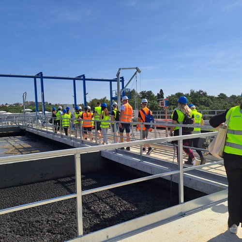 Dopo le parole introduttive del direttore della Depurazione acque Rovinj – Rovigno s.r.l., Ognjen Pulić, agli alunni è stato mostrato il film sul Progetto di raccolta, smaltimento e depurazione delle acque reflue dell’agglomerazione di Rovigno, sulla costruzione e riqualificazione della rete fognaria nell’ambito del progetto, sulla costruzione dell’Impianto di depurazione delle acque reflue - IDAR Cuvi e dell’Impianto per l’essicazione solare dei fanghi, e in seguito hanno visitato gli impianti dell’IDAR. Sotto la guida degli addetti della Depurazione acque Rovinj – Rovigno s.r.l. Danijela Poropat, Sanja Ivančević e Sara Zilli Karlović agli alunni è stato spiegato il percorso delle acque reflue, dal pozzetto di entrata allo scarico in mare, il funzionamento del pretrattamento meccanico, dei bacini di depurazione e del trattamento dei fanghi. Inoltre, i visitatori hanno avuto l’occasione di vedere come sembra l’acqua depurata prima dello scarico in mare. Infine hanno vistato il laboratorio di analisi delle acque reflue e la sala di controllo e di gestione computerizzata dell’Impianto di depurazione delle acque reflue.