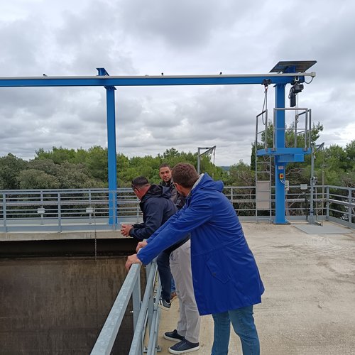 Ad accoglierli è stato il Direttore della ditta Depurazione acque di Rovinj-Rovigno s.r.l., Ognjen Pulić, insieme ai suoi collaboratori, presso l’edificio amministrativo, dove hanno avuto l’occasione di conoscere meglio l’attività dell’azienda e di scambiare preziose esperienze professionali. Dopo la proiezione del film documentario, il responsabile dell’impianto di depurazione delle acque reflue, del laboratorio e dell’impianto di essiccamento solare dei fanghi, Ivan Balković, li ha accompagnati nella visita dell’impianto. Hanno potuto vedere tutti gli edifici destinati alla tecnologia (pretrattamento meccanico, equalizzazione e trattamento dei fanghi, nonché biologia e ultrafiltrazione), il garage per veicoli da carico specializzati e la stazione di controllo. Nel seminterrato dell’edificio amministrativo hanno avuto modo di visitare il laboratorio per le analisi delle acque reflue, quello per la verifica dell’impermeabilità e le ispezioni CCTV, la sala con le stampanti 3D e la sala di controllo dotata del sistema SCADA per il monitoraggio e la gestione dei processi.